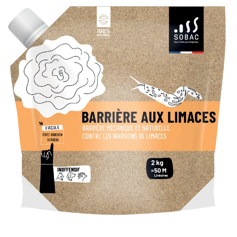 Barrière mécanique et naturelle contre les limaces, escargots et loches. Elle est utilisable en agriculture biologique. Protège les cultures (50 m linéaires) Protection de 50 m linéaires, résistante à la pluie. Inoffensif pour la faune auxiliaire et les animaux domestiques